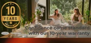 This exclusive warranty includes five years of full parts and labour cover, followed by an additional five years of parts-only support. It represents a major value-added benefit for homeowners, providing long-term peace of mind and reinforcing the quality and reliability of Carrier and Toshiba products.
